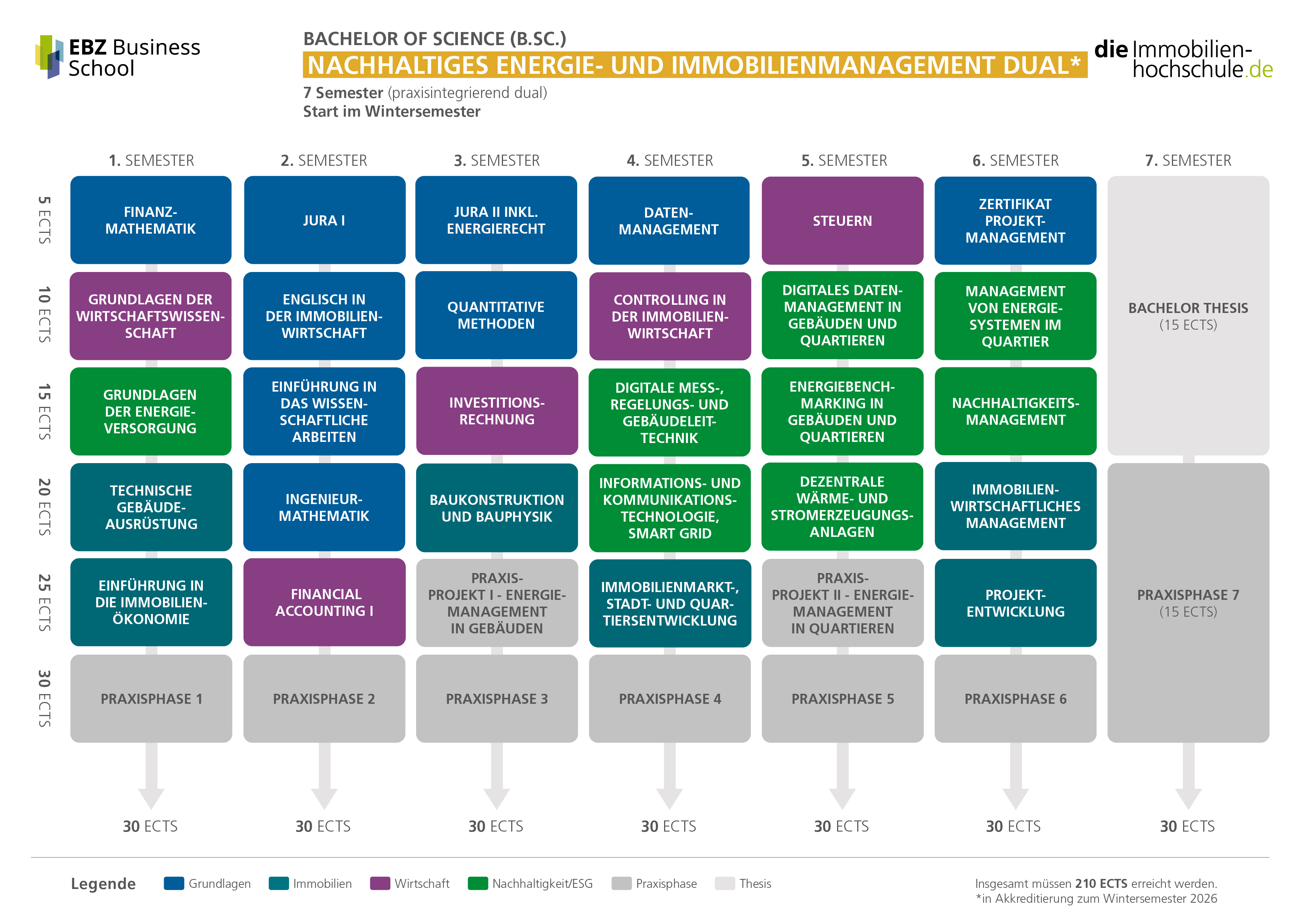 Mit erfolgreicher Beendigung des Studium (210 ECTS) erwerben Sie den Titel „Bachelor of Science Nachhaltiges Energie- und Immobilienmanagement dual“.